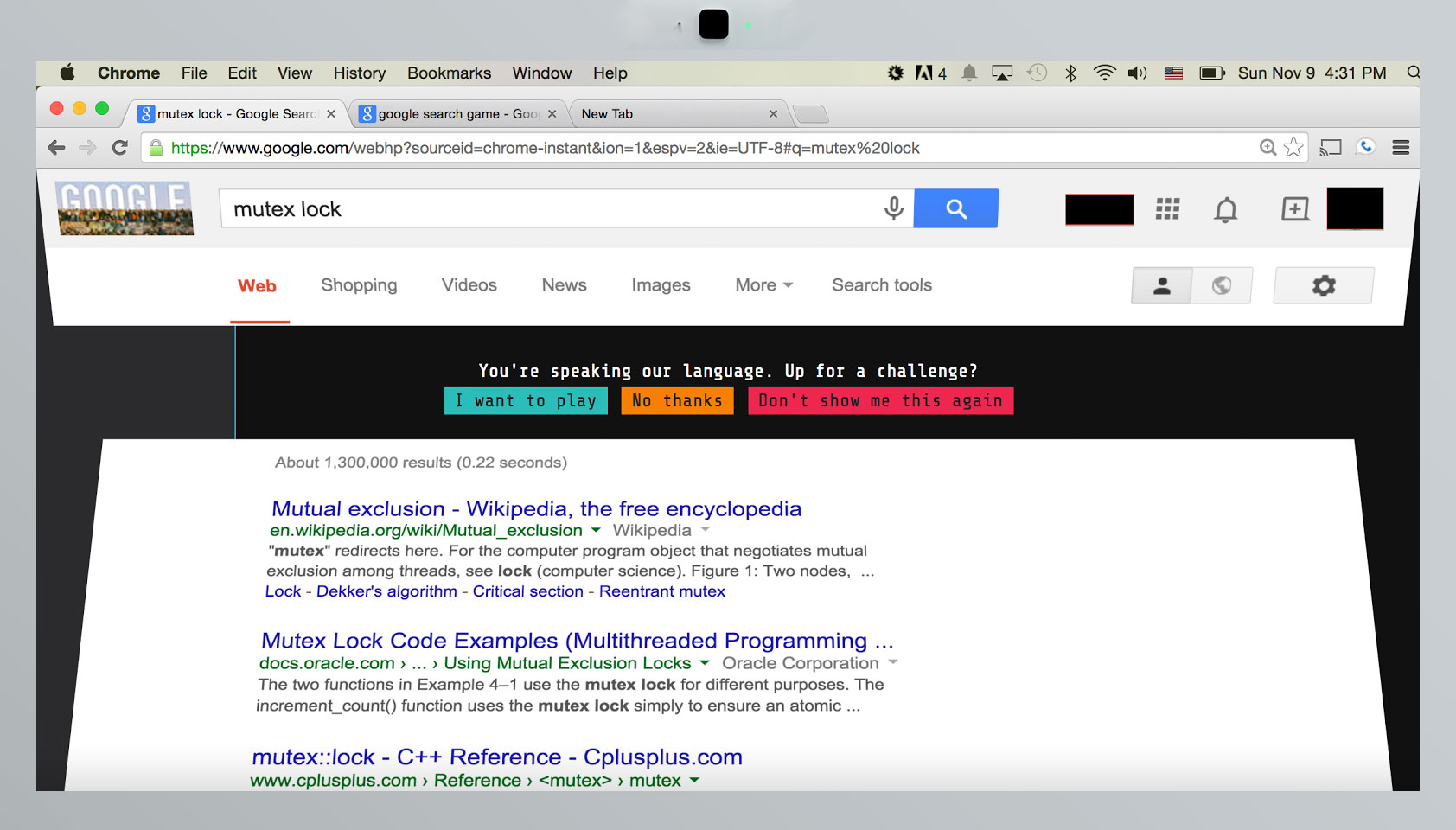 But then something unusual happened.The search results split and folded back to reveal a box that said “You’re speaking our language. Up for a challenge?”