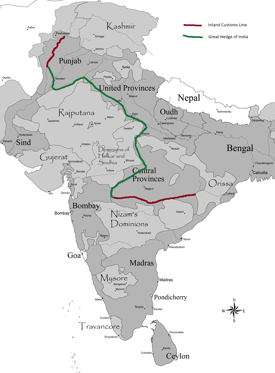 Who knew that in the 1800’s the British built a 12 foot high wall (giant thorny hedge really) across India to stop the smuggling of salt, opium, cannabis, sugar and who knows what else and — wait for it — made the Indians pay for it.