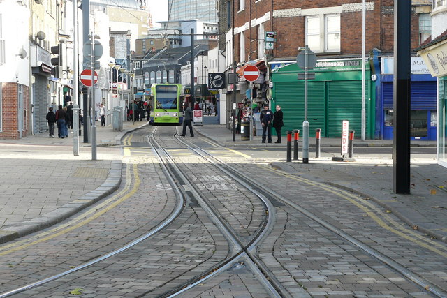 Trams are guided by tracks. Automated Cars could just follow painted stripes instead. Pedestrians know to keep away from the stripes, and the cars can easily manage avoiding each other, and still beep or stop if a pedestrian gets too close.